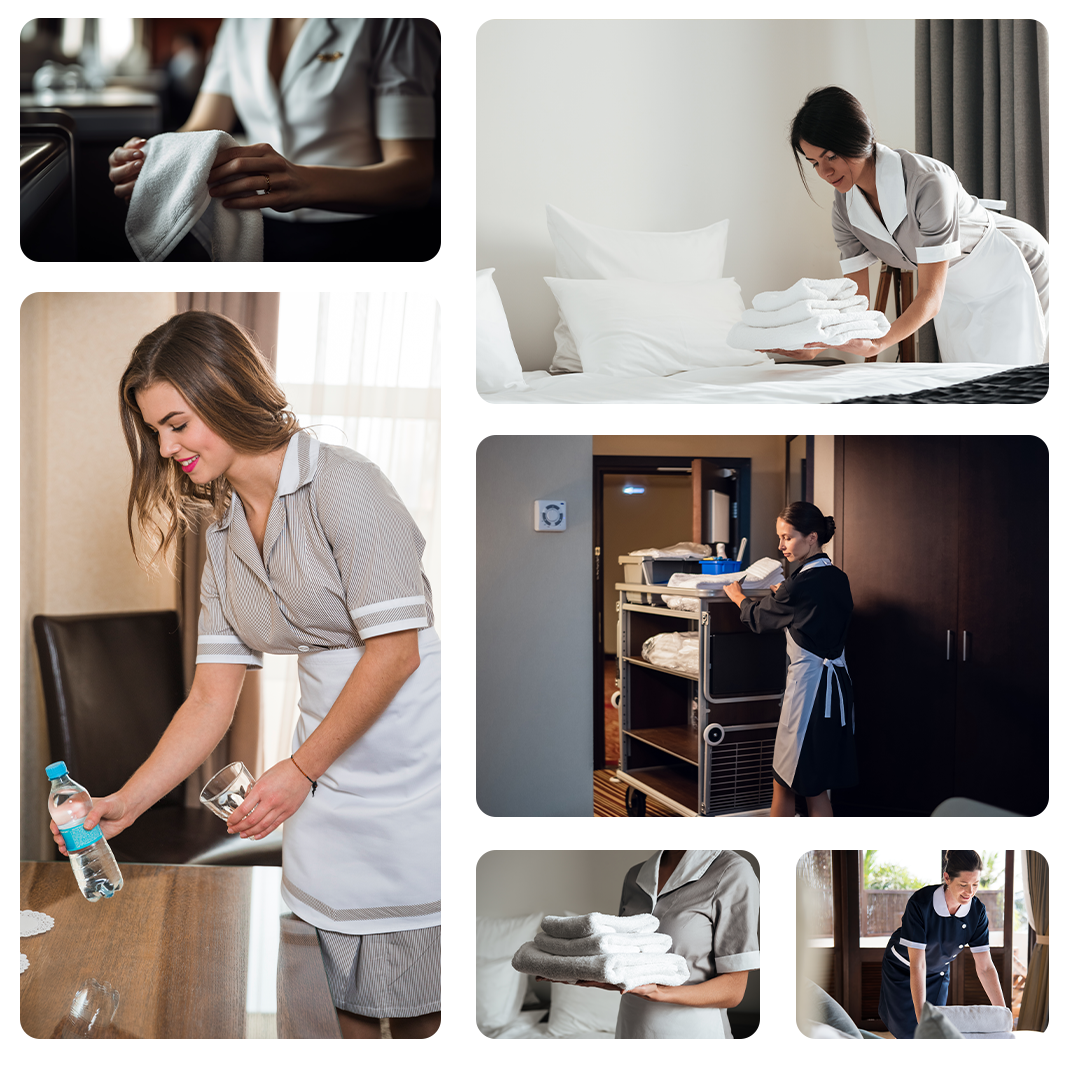 Hotelul furnizează uniforma de menaj, garantând un aspect profesional și confortabil pe durata activității.